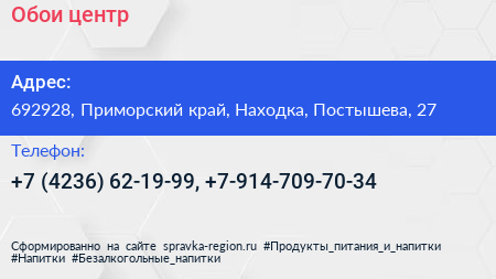 Обои центр по адресу 692928, Приморский край, Находка, Постышева, 27 в дальнейшем Организация, размещена в следующих категориях: