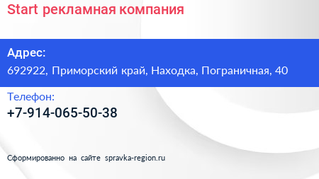 Start, рекламная компания по адресу 692922, Приморский край, Находка, Пограничная, 40 в дальнейшем Организация, размещена в следующих категориях: