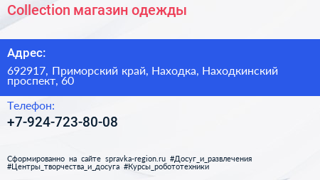 Collection, магазин одежды по адресу 692917, Приморский край, Находка, Находкинский проспект, 60 в дальнейшем Организация, размещена в следующих категориях: