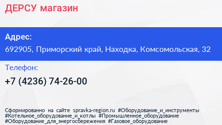 ДЕРСУ, магазин по адресу 692905, Приморский край, Находка, Комсомольская, 32 в дальнейшем Организация, размещена в следующих категориях: