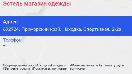 Эстель, магазин одежды по адресу 692924, Приморский край, Находка, Спортивная, 2-2а в дальнейшем Организация, размещена в следующих категориях: