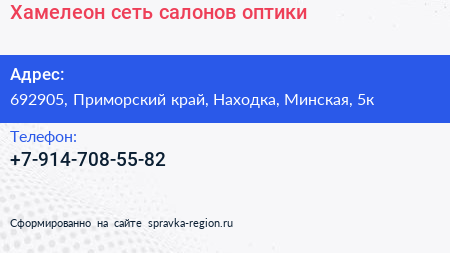 Хамелеон, сеть салонов оптики по адресу 692905, Приморский край, Находка, Минская, 5к в дальнейшем Организация, размещена в следующих категориях: