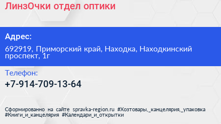 ЛинзОчки, отдел оптики по адресу 692919, Приморский край, Находка, Находкинский проспект, 1г в дальнейшем Организация, размещена в следующих категориях: