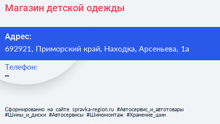 Магазин детской одежды по адресу 692921, Приморский край, Находка, Арсеньева, 1а в дальнейшем Организация, размещена в следующих категориях: