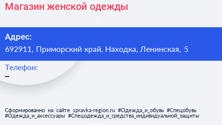 Магазин женской одежды по адресу 692911, Приморский край, Находка, Ленинская, 5 в дальнейшем Организация, размещена в следующих категориях: