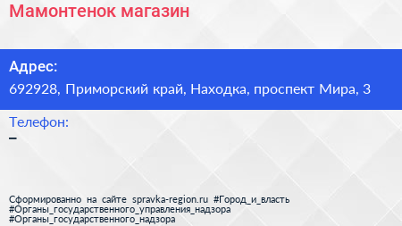Мамонтенок, магазин по адресу 692928, Приморский край, Находка, проспект Мира, 3 в дальнейшем Организация, размещена в следующих категориях: