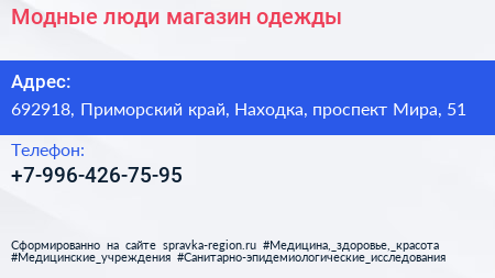 Модные люди, магазин одежды по адресу 692918, Приморский край, Находка, проспект Мира, 51 в дальнейшем Организация, размещена в следующих категориях: