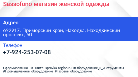 Sassofono, магазин женской одежды по адресу 692917, Приморский край, Находка, Находкинский проспект, 60 в дальнейшем Организация, размещена в следующих категориях: