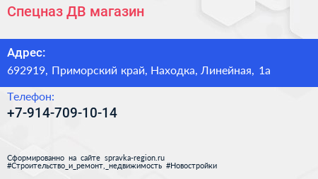 Спецназ ДВ, магазин по адресу 692919, Приморский край, Находка, Линейная, 1а в дальнейшем Организация, размещена в следующих категориях:
