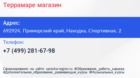 Террамаре, магазин по адресу 692924, Приморский край, Находка, Спортивная, 2 в дальнейшем Организация, размещена в следующих категориях: