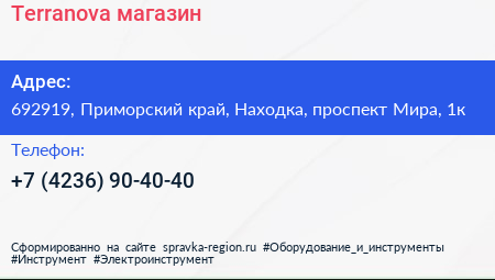 Terranova, магазин по адресу 692919, Приморский край, Находка, проспект Мира, 1к в дальнейшем Организация, размещена в следующих категориях:
