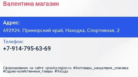 Валентина, магазин по адресу 692924, Приморский край, Находка, Спортивная, 2 в дальнейшем Организация, размещена в следующих категориях: