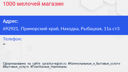 1000 мелочей, магазин по адресу 692921, Приморский край, Находка, Рыбацкая, 11а ст3 в дальнейшем Организация, размещена в следующих категориях: