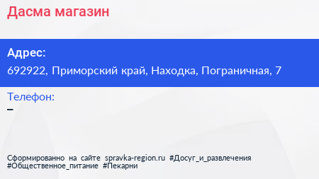 Дасма, магазин по адресу 692922, Приморский край, Находка, Пограничная, 7 в дальнейшем Организация, размещена в следующих категориях: