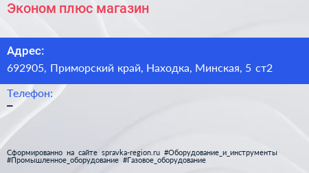 Эконом плюс, магазин по адресу 692905, Приморский край, Находка, Минская, 5 ст2 в дальнейшем Организация, размещена в следующих категориях:
