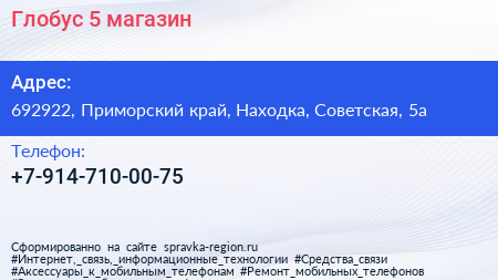 Глобус 5, магазин по адресу 692922, Приморский край, Находка, Советская, 5а в дальнейшем Организация, размещена в следующих категориях: