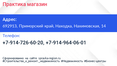 Практика, магазин по адресу 692913, Приморский край, Находка, Нахимовская, 14 в дальнейшем Организация, размещена в следующих категориях: