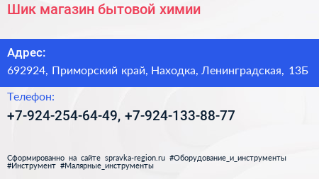 Шик, магазин бытовой химии по адресу 692924, Приморский край, Находка, Ленинградская, 13Б в дальнейшем Организация, размещена в следующих категориях:
