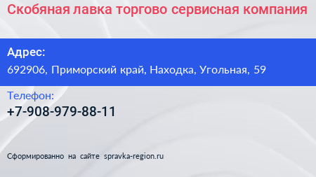Скобяная лавка, торгово-сервисная компания по адресу 692906, Приморский край, Находка, Угольная, 59 в дальнейшем Организация, размещена в следующих категориях: