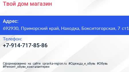Твой дом, магазин по адресу 692930, Приморский край, Находка, Бокситогорская, 7 ст1 в дальнейшем Организация, размещена в следующих категориях: