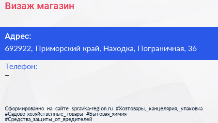 Визаж, магазин по адресу 692922, Приморский край, Находка, Пограничная, 36 в дальнейшем Организация, размещена в следующих категориях: