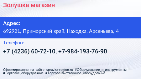Золушка, магазин по адресу 692921, Приморский край, Находка, Арсеньева, 4 в дальнейшем Организация, размещена в следующих категориях: