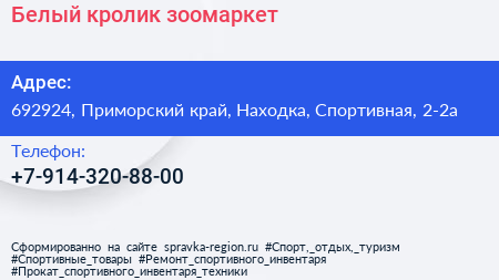 Белый кролик, зоомаркет по адресу 692924, Приморский край, Находка, Спортивная, 2-2а в дальнейшем Организация, размещена в следующих категориях: