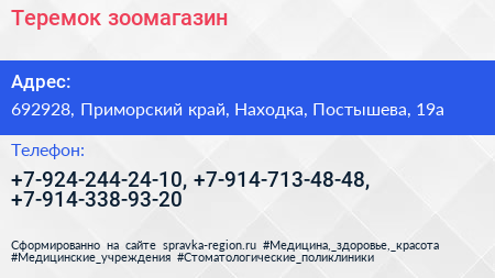 Теремок, зоомагазин по адресу 692928, Приморский край, Находка, Постышева, 19а в дальнейшем Организация, размещена в следующих категориях: