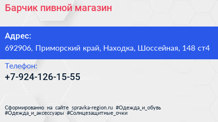 Барчик, пивной магазин по адресу 692906, Приморский край, Находка, Шоссейная, 148 ст4 в дальнейшем Организация, размещена в следующих категориях: