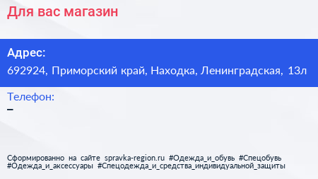 Для вас, магазин по адресу 692924, Приморский край, Находка, Ленинградская, 13л в дальнейшем Организация, размещена в следующих категориях: