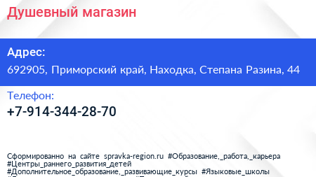 Душевный, магазин по адресу 692905, Приморский край, Находка, Степана Разина, 44 в дальнейшем Организация, размещена в следующих категориях: