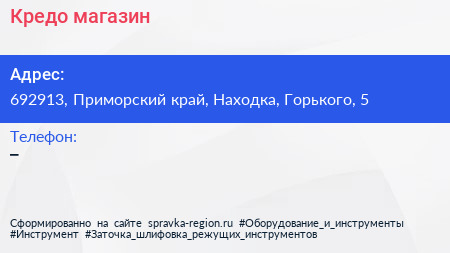 Кредо, магазин по адресу 692913, Приморский край, Находка, Горького, 5 в дальнейшем Организация, размещена в следующих категориях: