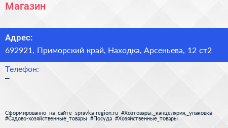 Магазин по адресу 692921, Приморский край, Находка, Арсеньева, 12 ст2 в дальнейшем Организация, размещена в следующих категориях: