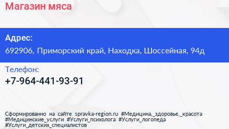 Магазин мяса по адресу 692906, Приморский край, Находка, Шоссейная, 94д в дальнейшем Организация, размещена в следующих категориях: