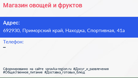 Магазин овощей и фруктов по адресу 692930, Приморский край, Находка, Спортивная, 41а в дальнейшем Организация, размещена в следующих категориях: