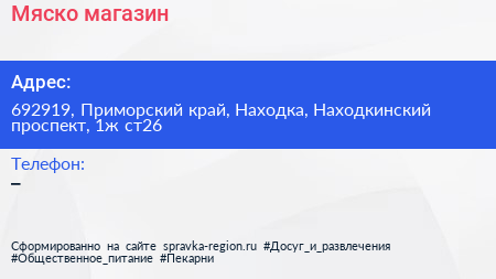 Мяско, магазин по адресу 692919, Приморский край, Находка, Находкинский проспект, 1ж ст26 в дальнейшем Организация, размещена в следующих категориях: