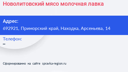 Новолитовский, мясо-молочная лавка по адресу 692921, Приморский край, Находка, Арсеньева, 14 в дальнейшем Организация, размещена в следующих категориях: