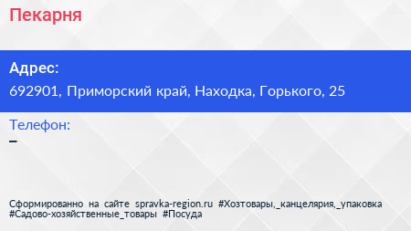 Пекарня по адресу 692901, Приморский край, Находка, Горького, 25 в дальнейшем Организация, размещена в следующих категориях:
