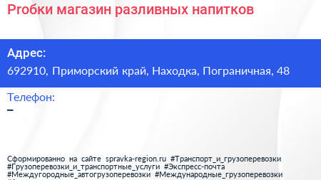 Proбки, магазин разливных напитков по адресу 692910, Приморский край, Находка, Пограничная, 48 в дальнейшем Организация, размещена в следующих категориях: