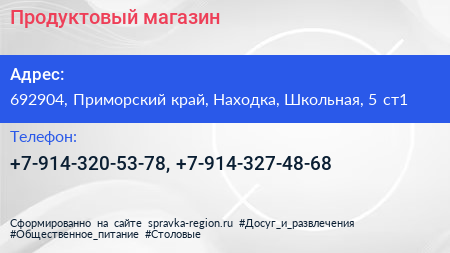 Продуктовый магазин по адресу 692904, Приморский край, Находка, Школьная, 5 ст1 в дальнейшем Организация, размещена в следующих категориях: