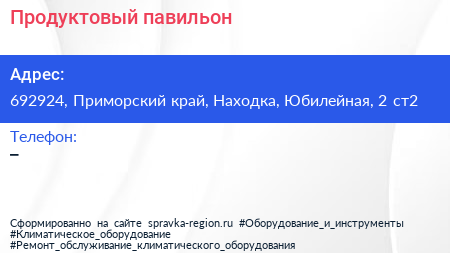 Продуктовый павильон по адресу 692924, Приморский край, Находка, Юбилейная, 2 ст2 в дальнейшем Организация, размещена в следующих категориях: