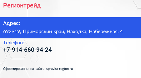 Регионтрейд по адресу 692919, Приморский край, Находка, Набережная, 4 в дальнейшем Организация, размещена в следующих категориях: