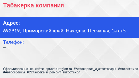 Табакерка, компания по адресу 692919, Приморский край, Находка, Песчаная, 1а ст5 в дальнейшем Организация, размещена в следующих категориях: