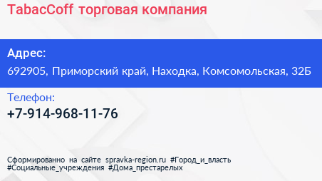TabaсCoff, торговая компания по адресу 692905, Приморский край, Находка, Комсомольская, 32Б в дальнейшем Организация, размещена в следующих категориях: