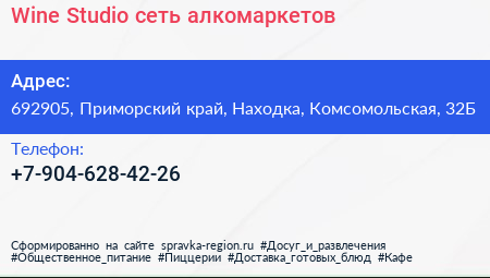 Wine Studio, сеть алкомаркетов по адресу 692905, Приморский край, Находка, Комсомольская, 32Б в дальнейшем Организация, размещена в следующих категориях: