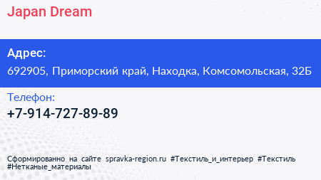 Japan Dream по адресу 692905, Приморский край, Находка, Комсомольская, 32Б в дальнейшем Организация, размещена в следующих категориях: