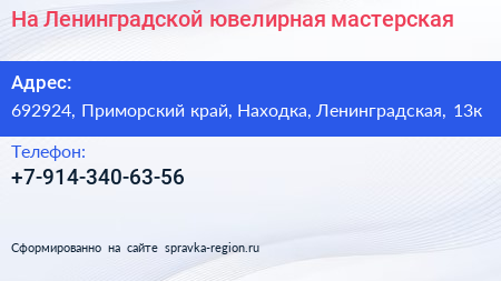 На Ленинградской, ювелирная мастерская по адресу 692924, Приморский край, Находка, Ленинградская, 13к в дальнейшем Организация, размещена в следующих категориях: