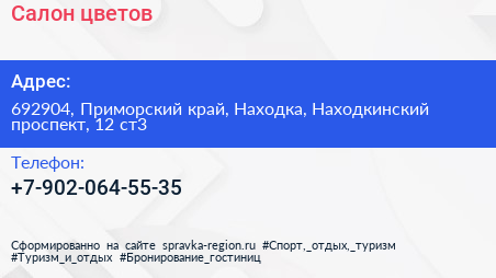 Салон цветов по адресу 692904, Приморский край, Находка, Находкинский проспект, 12 ст3 в дальнейшем Организация, размещена в следующих категориях: