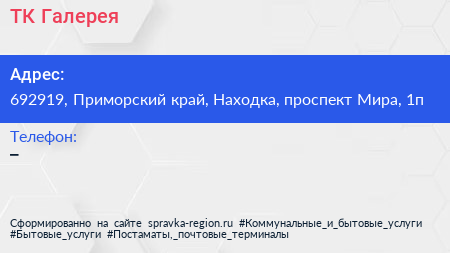 ТК Галерея по адресу 692919, Приморский край, Находка, проспект Мира, 1п в дальнейшем Организация, размещена в следующих категориях:
