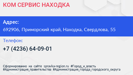 КОМ-СЕРВИС НАХОДКА по адресу 692906, Приморский край, Находка, Свердлова, 55 в дальнейшем Организация, размещена в следующих категориях: